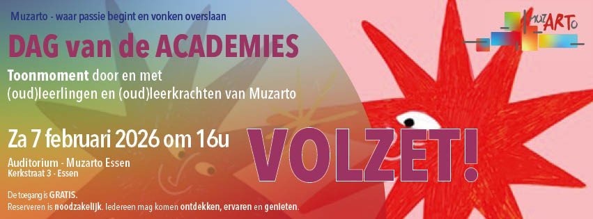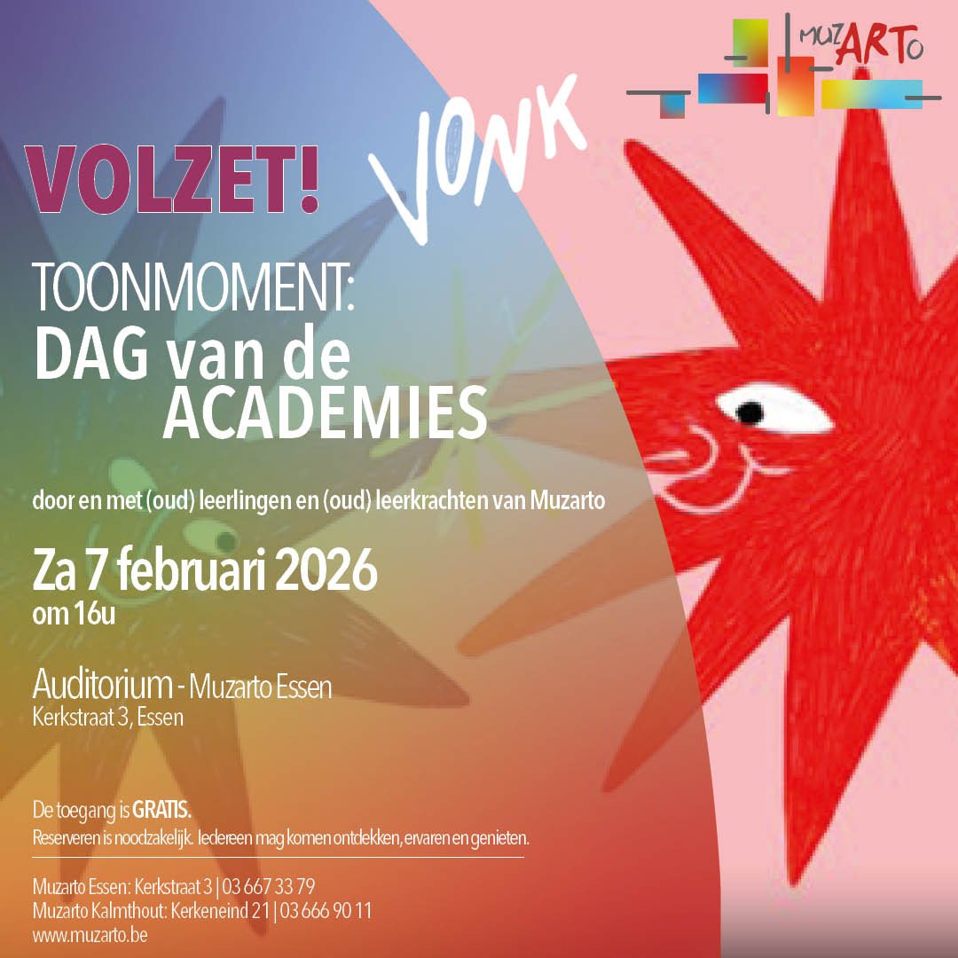 De Dag van de Academies is een jaarlijks event waarop alle academies voor deeltijds kunstonderwijs hun bruisende werking in de kijker zetten.